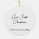 The reverse side offers even more personalisation, with room to add a name, event, or detailed date information to make the ornament truly unique. By default, the back reads "Our First Christmas", making it a ready-to-gift keepsake for couples, families, or friends celebrating a milestone.