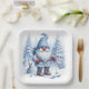 A whimsical watercolor bearded gnome with a winter hat is skiing with a cute bunny.