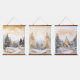 Decorate your house for the winter season with a beautiful set of three hanging panels each with a coordinating scene of a silvery grey and gold scene of snow, forest and Christmas tree. All pictures seem to sparkle.