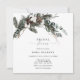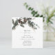 Celebrate the bride-to-be with this minimalist rustic winter bridal shower invitation featuring a watercolor pine and eucalyptus twig with cotton flowers and elegant handwriting calligraphy.