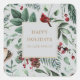 Winter Greenery Cardinal Happy Holidays Monogram Square Sticker