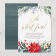 Invite friends or colleagues to celebrate the season with these elegant holiday party cards. The design features "Oh, what fun!" in beautiful gold script lettering, with your party details below in simple typography. The text is framed by a hand-painted border of fir, pine, winter berries, lush greenery, and a red poinsettia flower. These cards reverse to a peaceful teal watercolor image. Easily edit the front text with your party information!
