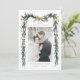 This wedding photo save the date features a watercolor winter greenery garland adorned with pine branches, holly berries, botanical foliage, gold ribbon bows, and simple calligraphy. For more advanced customisation of this design, please click the BLUE DESIGN TOOL BUTTON above! Matching items are also available.