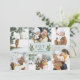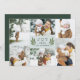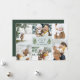 Elegant botanical holiday photo card features six of your favourite photos in a geometric collage layout. "JOY" or your short custom holiday greeting appears in the centre, flanked by two green olive branches on a pale sage background. Personalise with your names, and add an additional photo to the back, along with the year.