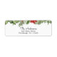Return address label featuring a gold frame surrounded by watercolor winter greenery, evergreen and holly berries. Customize with your name and address.