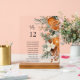 Table sign with table number and guests names, small seating chart table top sign featuring watercolor cinnamon, dry oranges, pine tree.