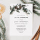 Celebrate your wedding in style with this minimalist rustic winter wedding invitation featuring a watercolor pine and eucalyptus twig with cotton flowers and elegant handwriting calligraphy.