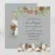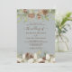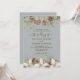 Winter pine cones and white flowers border the edges on a grey with elegant script wedding invitation.