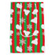 Christmas bag with red and green background, white mittens, hats and snowflakes.
