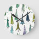 Winter Holiday Evergreen Trees Round Clock
