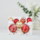 Christmas tree holiday ornaments in red, white and gold. Customise with your business name on the front. The back is a gift certificate template.