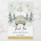Unique drive-through favours featuring elegant watercolor pine trees, snowy landscape and a chic vintage car