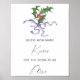 Elegant winter Bridal shower. Watercolor christmas holly branch decorated with purple ribbon. Winter holly branch. Branch of kisses. Matching items available.