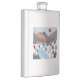 The product is a good size and came exactly as it was pictured. The lid is not attached to the flask, which could be dangerous on drunken nights... The print came out surprisingly well and looks very sharp. Would definitely recommend.