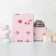 Soft pink wrapping paper featuring cozy winter mittens, snowflakes and warm holiday touches. Perfect for winter gifting.