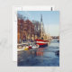 View of boats on a canal during winter in Copenhagen, Denmark.