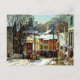Vintage postcard, Winter in Gloucester, Massachusetts. Delightful painting by Frederick Mulhaupt of a winter scene in Gloucester, complete with carriage and horses on a snow-lined city street.
