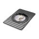 Watercolor painting of a winter scene in New England, a quiet day when the snow has just fell into the ground. Quite picturesque and peaceful. The design has black circle frame around it with personalised texts on the top and lower side. The design has vertical grey and black stripes pattern. Customisable in Zazzle with your own text for a personalised design. Check out my store for matching items!