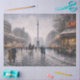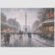 A refined winter scene set in historic Paris, centered on a majestic obelisk rising above a snow-covered square. Elegant figures move through the falling snow, while cafés glow warmly along the streets. Finely detailed faces, period clothing, and a horse-drawn carriage create a timeless atmosphere of romance, movement, and classic European charm.