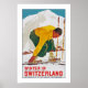 Vintage European travel poster "Winter in Switzerland" promotiong skiing and winter sports.