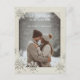 Invite your closest family and friends to an intimate celebration after your private vows or city hall wedding. Send out holiday postcards and at the same time invite them to a cosy wedding dinner. This customisable holiday postcard featuring a romantic snowy design decorated by delicate snowflakes and the sweet phrase “Forever starts this winter.” Add your favourite photo and personalise it with names, dates, or a heartfelt message. Perfect for couple wanting a small intimate wedding this winter.