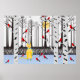 Winter Joy - Cat with scarf Birch Trees Cardinals Poster