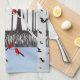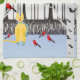 Winter Joy - Cat with scarf Birch Trees Cardinals Tea Towel