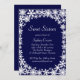 Bright white snowflakes on a dark blue background decorate this winter Sweet Sixteen Party Invitation. If additional items are needed in this collection, just contact us at prettyfancyinvites@gmail.com with your request.