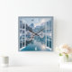 Winter Lake Eagle Fisherman Snowy Mountains Square Wall Clock