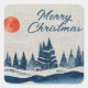 Winter Landscape and Moon Merry Christmas Return Address label. Christmas holiday return address labels with snowy landscape, trees and orange Moon.