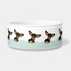 Proud santa dachshund in a winter tree landscape customisable pet bowl design.