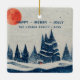 Winter Landscape Forest Moon Navy Blue Drawing Merry Jolly Happy Christmas Ornament. Calm winter nature. Happy, merry, jolly and your family name - add your text.