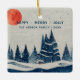 Winter Landscape Forest Moon Navy Blue Drawing Ceramic Ornament