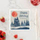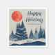 Winter Landscape Forest Orange Moon Navy Blue Drawing Holiday Napkins. Calm winter snow landscape with forest. Happy holidays in a trendy script. Add your family name.
