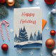 Winter Landscape Forest Navy Blue Drawing Holiday Card