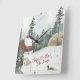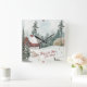 Winter Landscape Lakeside cabin clock lettered with "There's No Place Like Home" in trendy script typography. This rustic country design has a watercolor scene of a lakeside lodge, pine trees, a duck on the lake, snow and a sled.