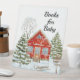 A charming Baby Shower design with festive winter background with fir trees and a red house! You can personalise this with your own details. A cute, lovely, winter design.