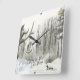 Winter Landscape wall clock, lettered with "There's No Place Like Home" in trendy script typography. This rustic country design has a watercolor scene of a snowy woodland path, a lake with a duck, a robin and an owl on the tree swing.