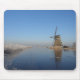 Mousepad with a landscape in the countryside in the Netherlands in winter with a windmill, ice on the river and frosted reeds under a clear blue sky.