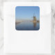 Photo sticker with a landscape in the countryside in the Netherlands in winter with a windmill, ice on the river and frosted reeds under a clear blue sky.
