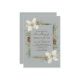 Winter pine cones and white flowers on a light grey with elegant script wedding invitation.