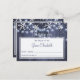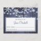 Chic and elegant bride to be recipe postcard with white snowflakes and hanging twinkle lights on barn wood dark blue grey background. Ideal for your rustic country winter | seasonal wonderland themed bridal shower.