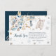 Send heartfelt thanks after your winter baby shower with this elegant folded thank you card featuring the sweet Little Snowflake Clothesline design – tiny knit outfits swaying among delicate watercolor snowflakes, frosty berries, and golden ornaments in soft icy blues and warm beige. Gender-neutral and fully customizable inside. Perfectly matches the entire collection!