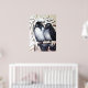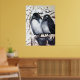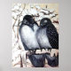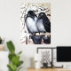 WINTER LOVE BIRDS IN SNOW Black White Poster