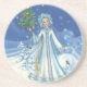 Soft blue tones set the mood for this delightful winter fairy. She hold a small Christmas tree and the wind is blowing lovely swirls of snow and snowflakes about her. A vintage touch of fantasy for the holiday season.
