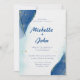 Winter Marble watercolor Gold Blue Wedding Invitation