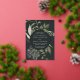 Our Winter Meadow wedding invitation surrounds your wedding day details with a circular border of muted watercolor foliage in wintry shades of green. A modern yet organic choice for winter or spring weddings featuring intricately painted botanical elements. Colorway: Winter Meadow, a dark and moody blend of muted dusty sage green, fern, and olive green foliage on a soft black background.