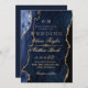 Winter Modern Moody Blue and Gold Agate Wedding Invitation