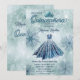 Elegant winter wonderland watercolor hand drawn ball dress Quinceañera invitation design.