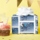 Raven haired fairy all in blue. The moon behind the fairy is shining brightly. Snowflake sand Celtic knot work all around them in a blue ombre backdrop.